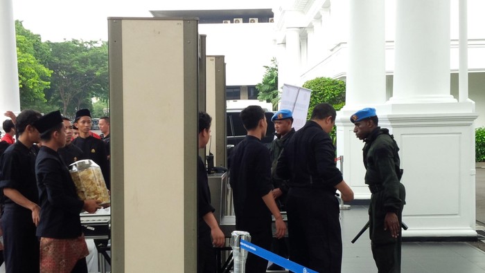 Tampak di halaman belakang Istana Negara, dibuat security door. Dua orang petugas Paspampres bersenjata lengkap berdiri dan mengawasi setiap tamu yang akan masuk. Mereka juga mewajibkan setiap orang dan barang menjalani pemeriksaan lewat metal detector.