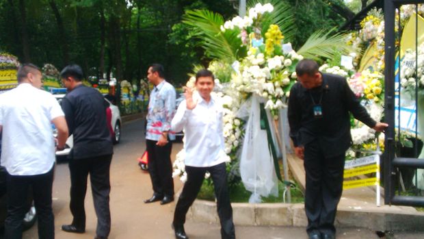 Mereka tiba di rumah duka Jl Widya Chandra V no 26, Jakarta Selatan, Selasa (19/1/2016) pkl 16.40 WIB. Meski turun dari mobil yang sama, mobil dinas Menteri Agraria dan Tata Ruang berplat nomor RI 42 mengikuti di belakang.