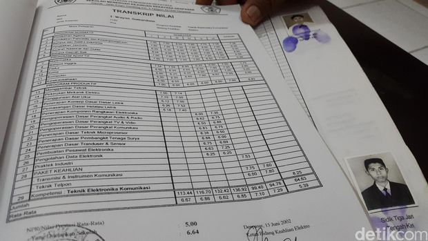 Kepala SMK Rekayasa Denpasar I Wayan Konol didampingi humas Wayan Sudira memperlihatkan foto rapor Tawan. Memang, dalam raport itu nilai Daftar Nilai Ujian Nasional (Danun) untuk mata pelajaran eksakta yakni matematika, fisika dan kimia berkisar 1-3. Sedangkan bahasa Inggris 2,80.