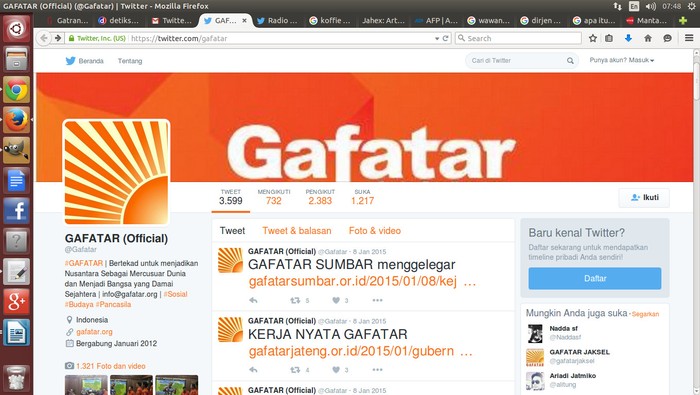 Berapa lama keduanya absen atau tidak masuk kerja karena bergabung Gafatar? "Kira kira seminggu. Karena keduanya berangkat seminggu lalu setelah kabar Gafatar meledak," jawab Sumarno.