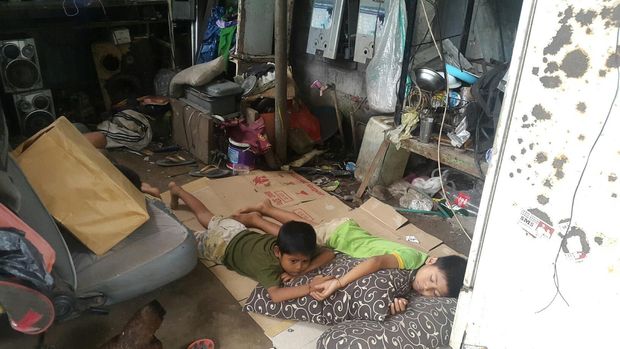 Keluarga Tawan tidur di kursi dan kardus (Putri Akmal)