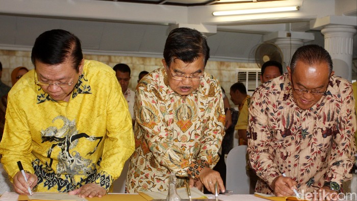 "Pak JK hadir. Dengan Pak Yasonna (Menkum HAM), Pak Menko (Polhukam-Luhut Pandjaitan), dan Pak Tjahjo (Mendagri)," kata Sekjen Golkar kubu Ical, Idrus Marham di JCC, Jakarta, Senin (25/1/2016).