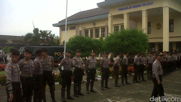Tampak polisi menjaga ketat di sekitar PN Cilacap. |