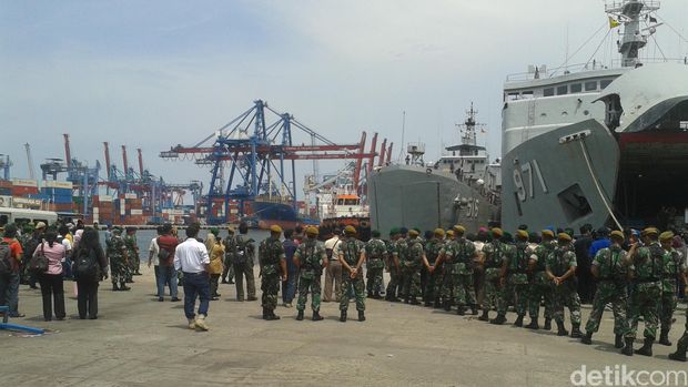 "Mereka (Gafatar) tiba semalam pukul 01.00 WIB di perairan Jakarta. Mereka masih bersandar di perairan Jakarta. Lalu lempar jangkar," tutur Kadispen Kolinlamil Letkol Laut Bazisokhi Gea di Dermaga Mako Kolinlamil Tanjung Priok, Jakarta Utara, Rabu (27/1/2016).