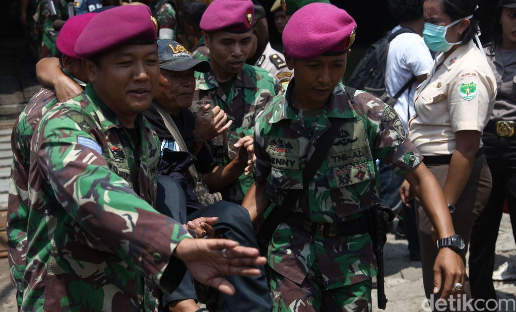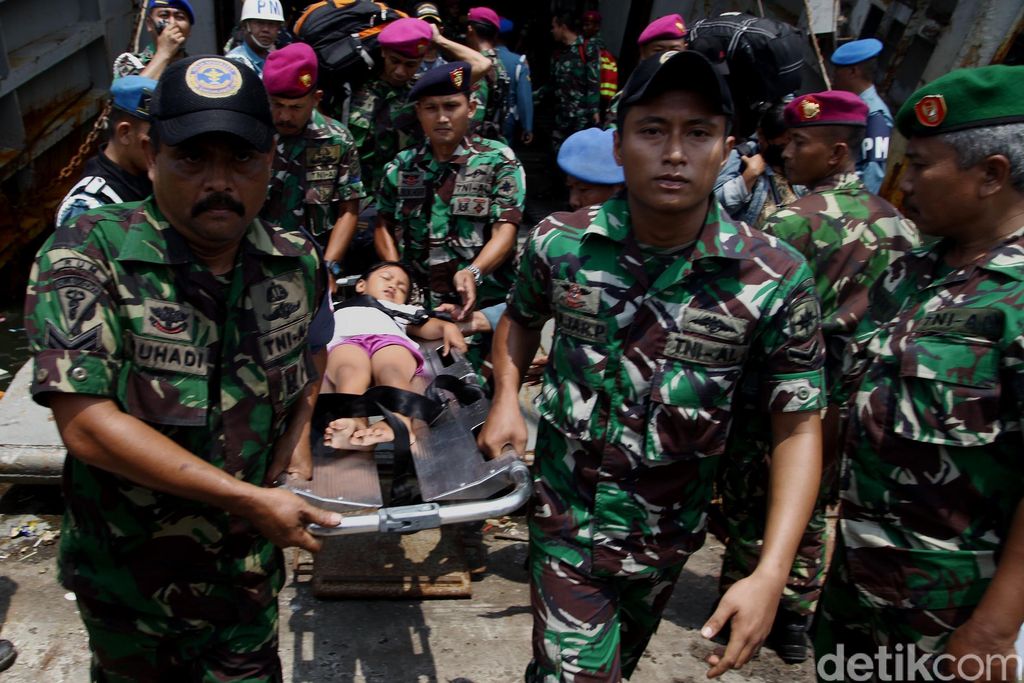 Saking letihnya, ada juga warga yang dibopong. Bahkan ada beberapa anak-anak yang dibawa ke ambulans.