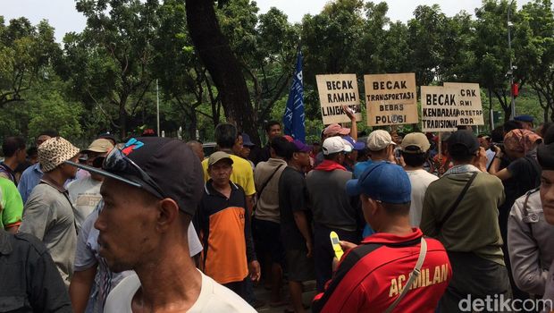 Berdasarkan salah satu pengakuan pengendara becak yang berdemo, Sugeng Sugiarto becak miliknya hilang diambil oleh Satpol PP saat tengah malam. Dia pun menuntut agar Pemprov mencarikan jalan tengah agar dirinya bisa mengais rezeki.