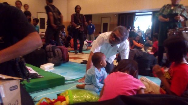 Arist mengunjungi tempat penampungan eks anggota Gafatar di Taman Wiladatika, Cibubur, Jakarta Timur, Kamis (28/1/2016). Dia berbincang-bincang dengan para pengungsi, khususnya anak-anak.