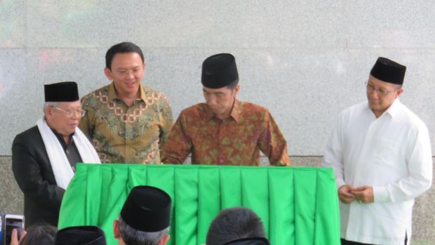 "Alhamdulilah, akhirnya di bawah Gubernur Basuki Tjahaja Purnama, Pak Ahok, masjid ini bisa diwujudkan dan jadi," tutur Jokowi dalam sambutan peresmian Masjid Fatahillah, Balai Kota DKI Jakarta, Jl Medan Merdeka Selatan, Jakarta Pusat, Jumat (29/1/2016).