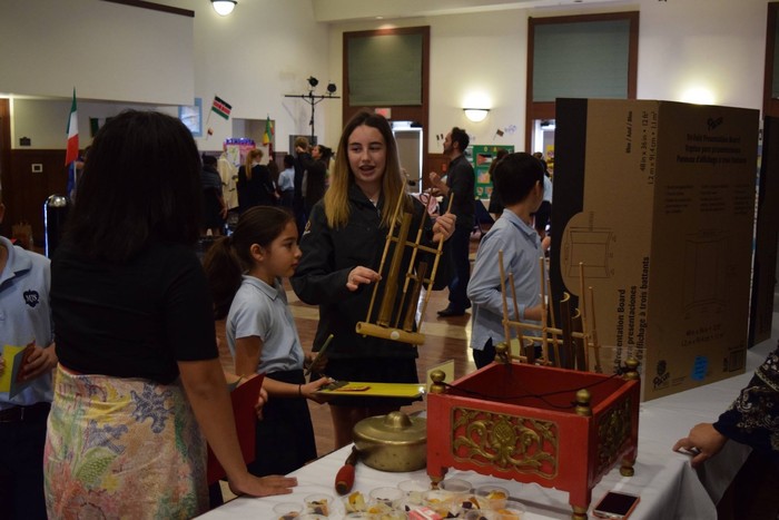 Selain instrumen musik, di booth KJRI para siswa sekolah dasar sibuk memperhatikan gambar peta Indonesia, hewan langka khas Indonesia, kuliner Indonesia dan beberapa obyek wisata unggulan.