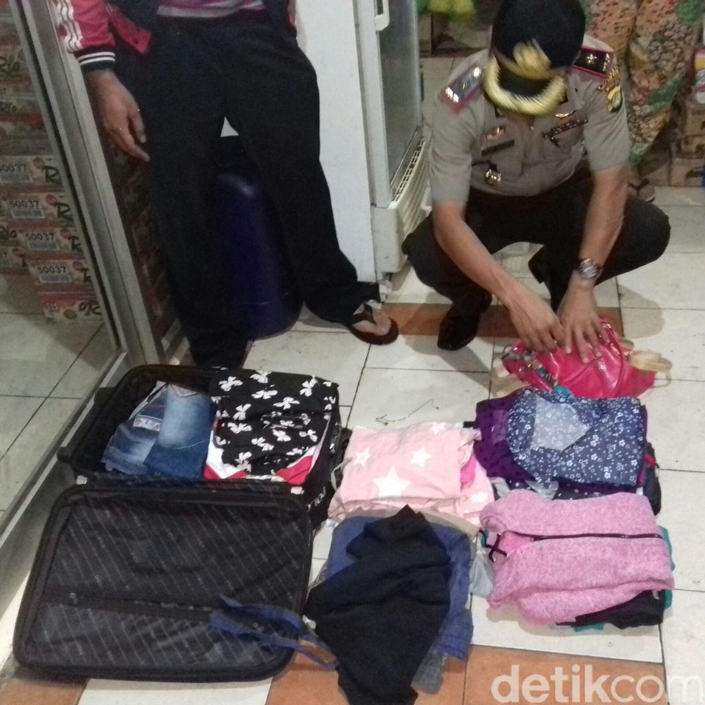 Namun setelah diperiksa, tidak ada baeang-barang berharga di dalam koper tersebut. Isinya beberapa helai pakaian wanita, celana, kalung pelastik dan perhiasan imitasi.