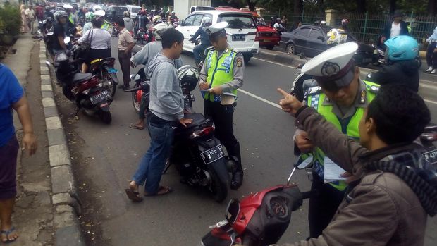 "Ini dikasih Pak, bukan beli," kata seorang bikers yang terjaring razia.