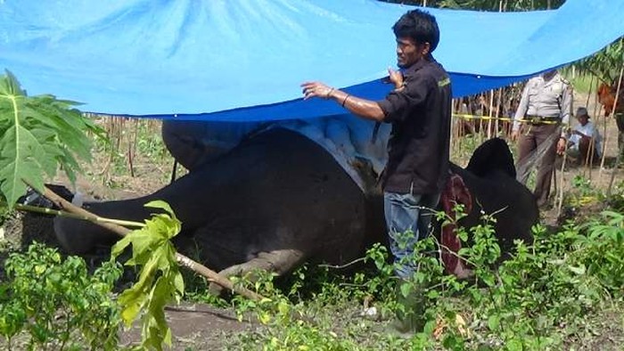 "Kami menduga kuat, bahwa gajah betina usia antara 20 sampai 30 tahun ini mati bukan karena termakan racun, namun terkena kawat yang sengaja dialiri listrik," kata Koordinator Himpunan Penggiat Alam (HIPAM), Zulhusni Sukri yang dihubungi detikcom, Kamis (4/2/2016).