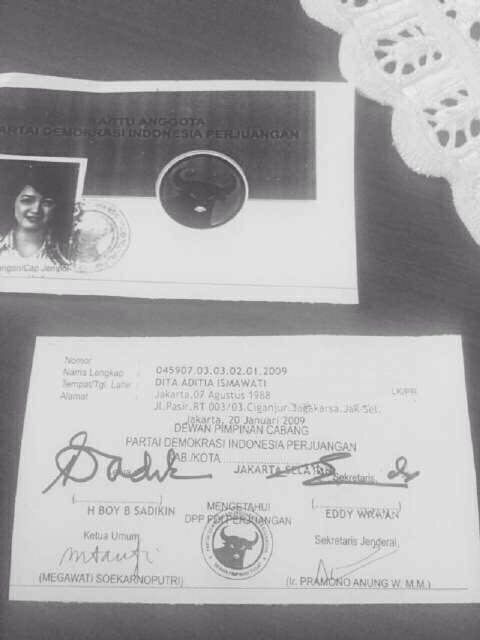 Kartu Anggota PDIP Dita Aditia (dok. istimewa) |