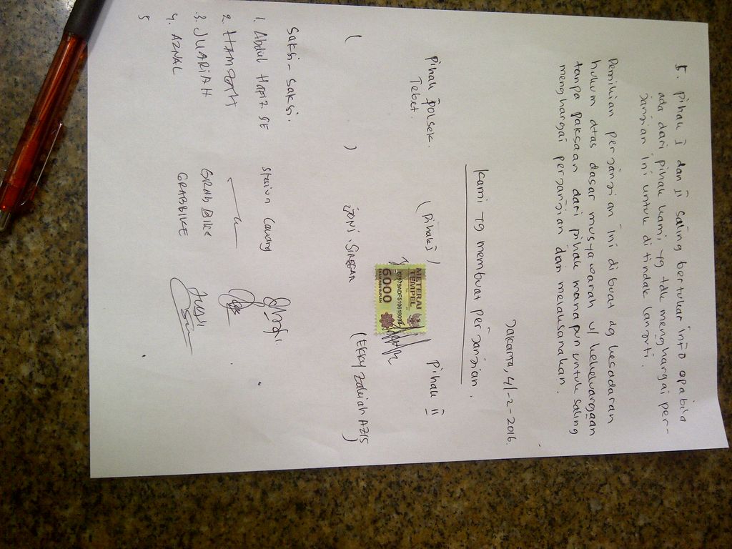 5. Pihak I dan II saling bertukar info apabila ada dari pihak kami yang tidak menghargai perjanjian ini untuk ditindaklanjuti.