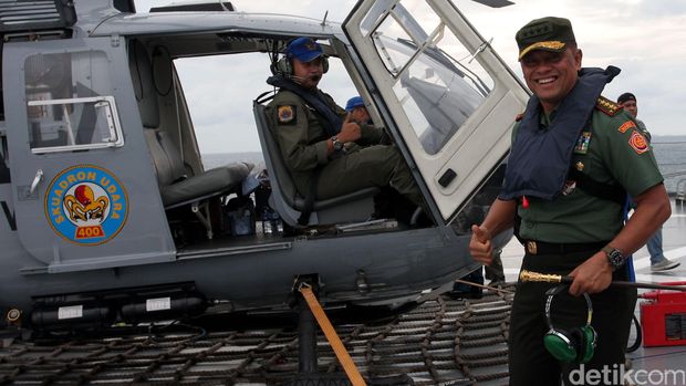 Setelah 4 jam berlayar dari Surabaya, saat kapal berada di perairan Laut Jawa di atas Pulau Madura, Panglima TNI Jenderal TNI Gatot Nurmantyo tiba di atas KRI Makassar menggunakan helikopter sekitar pukul 15.00 WIB. Ia mampir untuk melepas dan tak lama kemudian kembali bertolak ke Surabaya.