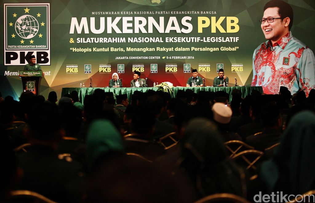 "Holopis Kuntul Baris, Menangkan Rakyat dalam Persaingan Global. Inilah tema Mukernas dan Silatnas PKB. Tapi ini bukan sekadar sebuah tema kosong. Ini adalah niat, tekad dan ghirah perjuangan PKB," kata Cak Imin dalam acara pembukaan Mukernas PKB di JCC, Senayan, Jakarta, Jumat (5/2/2016).