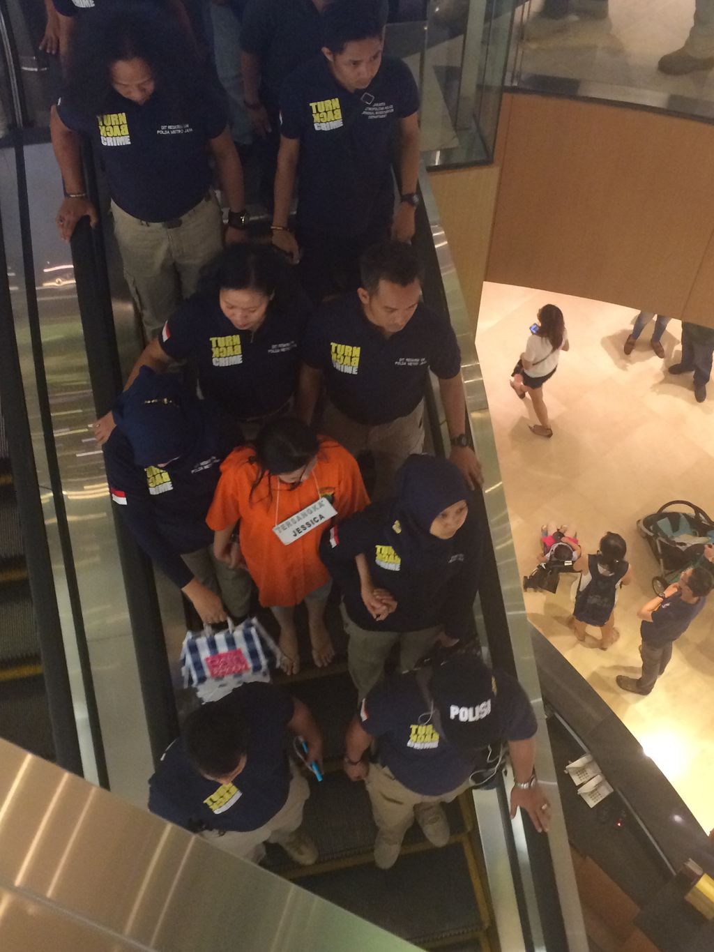 Jessica justru tersenyum. Jessica bahkan tersenyum saat menuruni elevator ketika hendak menuju ke basement mal Grand Indonesia.