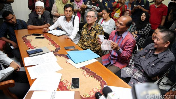 Daeng Azis dan beberapa warga menyambangi Komnas HAM dengan menumpang Mercy C 280. Ia ditemui Komisioner Hafidz Abbas.