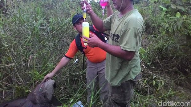 "Kemarin satu ekor gajah liar sudah berhasil kita obati karena kaki depannya terluka akibat jeratan. Hari ini rencananya dua ekor gajah antara induk dan anaknya yang juga terluka akibat jeratan akan diobati," kata Supartono. (cha/rvk)