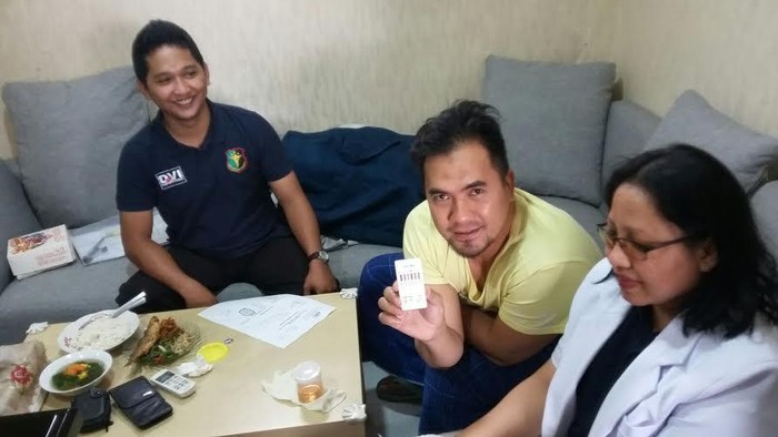 Ada 3 orang dari tim Dokkes Polda Metro Jaya yang memeriksakan kesehatan pedangdut yang akrab disapa Bang Ipul itu. Tim Dokkes Polda Metro Jaya juga melakukan tes urine kepada Saipul.