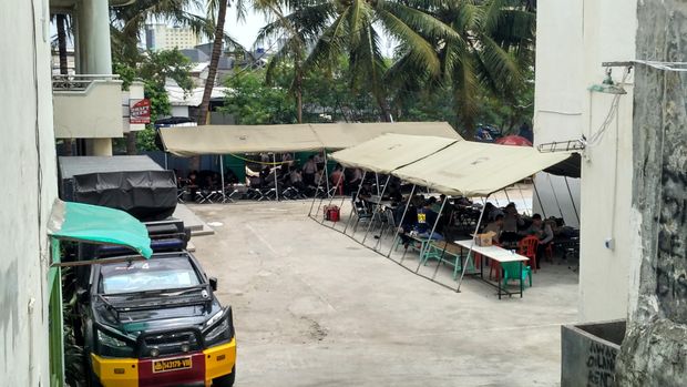 Aparat yang bersiaga di kawasan Kalijodo, Minggu (21/2/2016) (Foto: Aditya/detikcom) |
