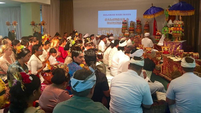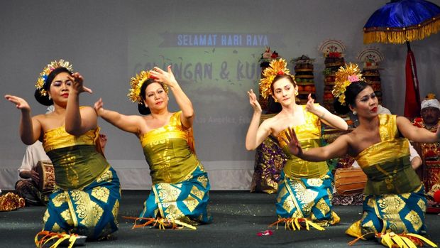 Perayaan Hari Raya Galungan dan Kuningan itu diselenggarakan oleh komunitas Hindu Indonesia Krama Bali bekerjasama dengan KJRI Los Angeles hari ini Sabtu waktu setempat atau Minggu (21 Februari 2016) WIB.