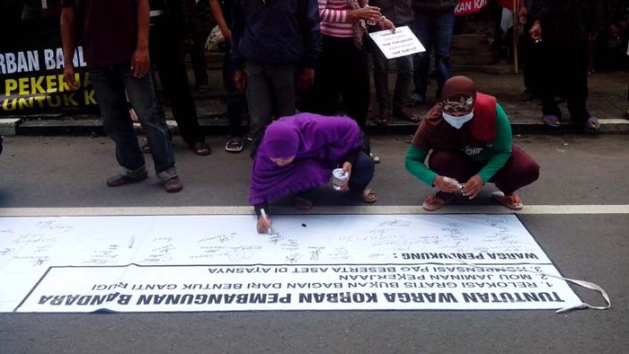 "Tuntutan kami adalah relokasi gratis dan itu bukan bagian daru bentuk ganti rugi," ungkap salah satu juru bicara warga pro bandara, Nanang disela-sela aksi.
