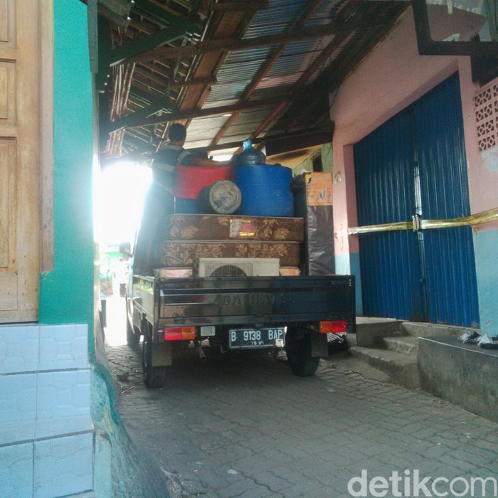 Sebuah mobil pikap hitam terlihat mengangkut barang-barang warga di Kalijodo, Penjaringan, Jakarta Utara, Senin (22/2/2016). Mobil bernopol B 9138 BAP itu mengangkut 3 spring bed, galon air, AC outdoor, ember, dan kursi. Mereka mengaku barang tersebut akan dibawa ke rumah saudara.