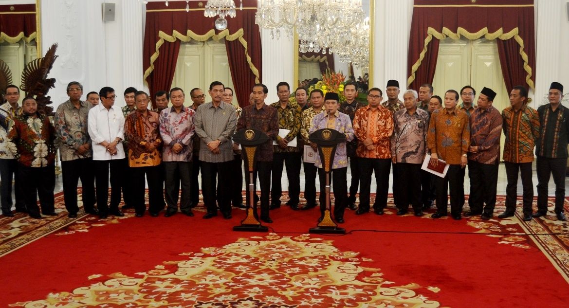 Dalam jadwal, rapat dimulai sekitar pukul 13.30 WIB. Rapat itu diawali dengan hidangan makan siang bersama di meja besar ruang Istana Merdeka. Jokowi ditemani Menko Polhukam Luhut Pandjaitan dan Menkum HAM Yasonna Laoly.