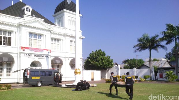 Pantauan detikcom, sejumlah teroris menyandera kepala bank di dalam gedung yang terletak berdekatan dengan Polresta Banda Aceh, Selasa (23/2/2016). Dari dalam, terdengar beberapa kali letusan senjata yang ditembakkan pelaku. Mendapat informasi adanya penyanderaan ini, pasukan Raider dan Brimob dikerahkan ke lokasi.