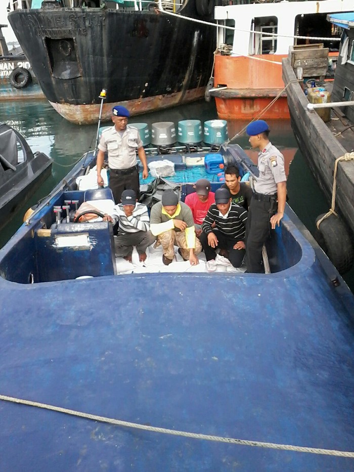 Segera setelah tertangkap, nakhoda berinisial SN dan 5 ABK digelandang ke dermaga Ditporlairud Polda Kepri. Speed boat juga ikut ditarik ke dermaga.