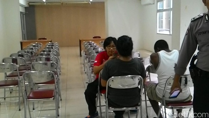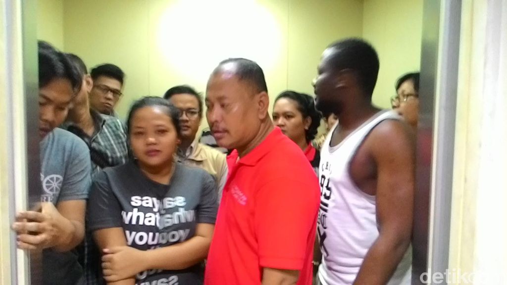 Setelah tes urine, keduanya dibawa ke tower Kemuning di lantai 1. Saat keluar melalui lift, WNA dan WNI hanya diam saja. Di tower Kemuning mereka akan dikumpulkan dengan penghuni dari tower lainnya. 1 Petugas polisi dari Polres Jaksel menanyai mereka.
