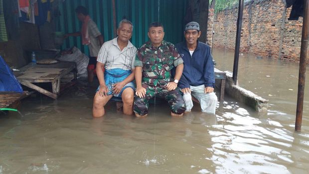 Pihak Kodim Tangerang juga memantau adanya banjir di RT 01, 02/RW 09, dan RT 04 /RW 07Β Kelurahan Jurumudi Baru, Kecamatan Benda, Kota Tangerang dengan ketinggian air yang cukup tinggi akibat luapan air dari Kali Kinjin.