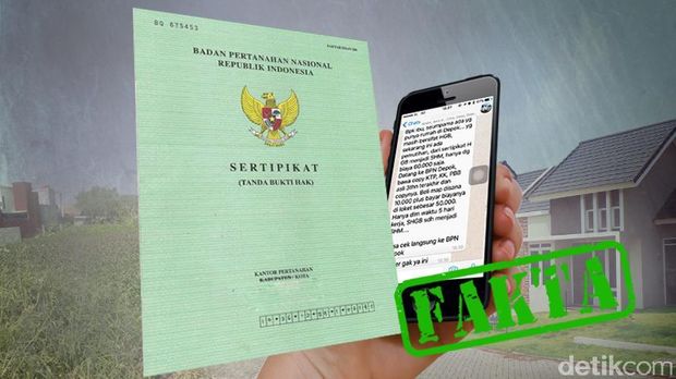 Beredar pesan berantai yang berisi informasi tentang biaya mengubah Hak Guna Bangunan (HGB) ke Sertifikat Hak Milik (SHM) bagi warga yang rumahnya berada di Depok. Mereka yang ingin mengubah HGB ke SHM cukup membayar Rp 50 ribu saja.