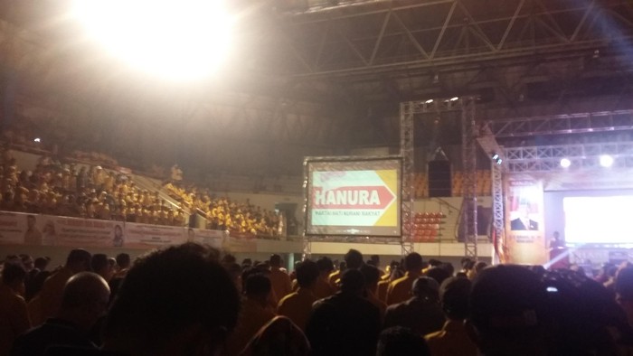 Pantauan detikcom, Minggu (28/2/2016) di lokasi, beberapa kader yang memakai kemeja berwarna kuning telah memadati Hall Tennis Indoor Senayan, Gelora Bung Karno, Jakarta Pusat. Mereka ada yang membawa bendera partai dan juga atribut seperti ikat kepala bertuliskan Hanura.