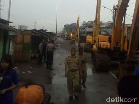 Di sisi yang lain, dua ekskavator juga sudah disiapkan. Total ada lebih dari 10 alat berat yang akan digunakan untuk menggempur semua bangunan di Kalijodo.