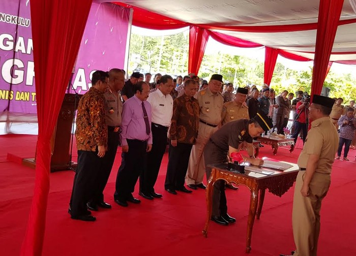 Deklarasi dan penandatanganan Pakta Integritas ini dihadiri juga oleh mantan Ketua MK Mahfud MD, Kepala BNN Komjen Budi Waseso, dan Kepala Ombudsman RI Amzulian Rifai. Acara juga dihadiri para pejabat TNI, Polri, dan Kejaksaan tingkat Provinsi Bengkulu. (asy/dra)