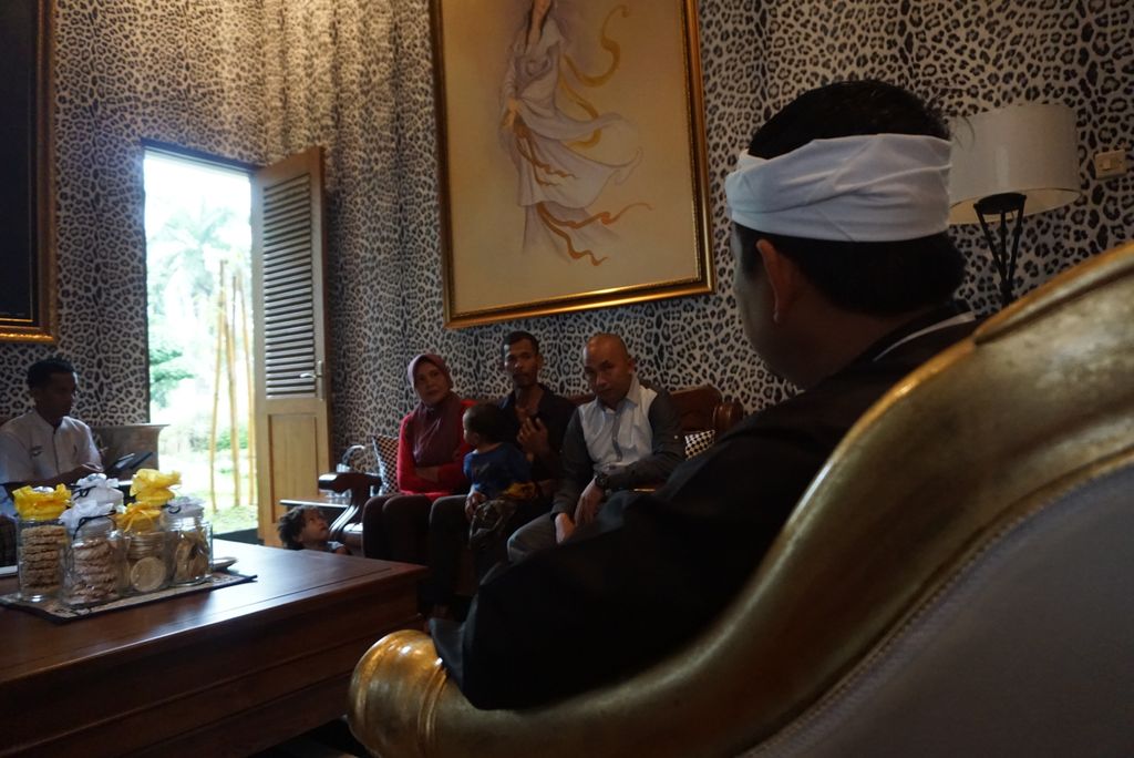 Kedatangan keluarga tersebut didampingi oleh Kepala Desa (Kades) Sukatani, Asep Sumpena. Mereka hendak mengklarifikasi soal dugaan anak keenam mereka yang baru berumur empat bulan meninggal karena gizi buruk.