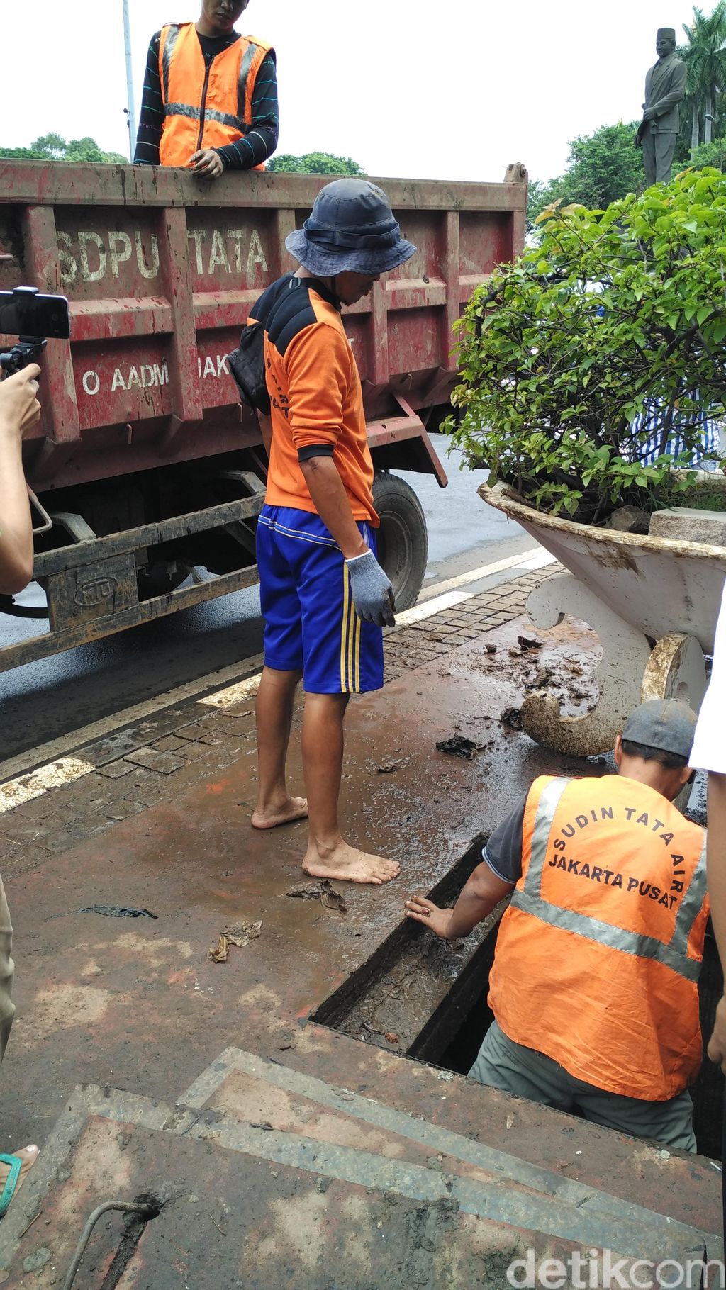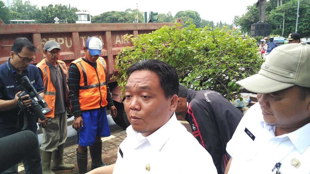 Salah satu petugas Suku Dinas Tata Air Jakpus Yusuf Sumardani tidak mengetahui dari mana asal bungkusan kabel yang menyebabkan saluran air terhambat sehingga membuat Jl Medan Merdeka Selatan tergenang pada 23 Februari.