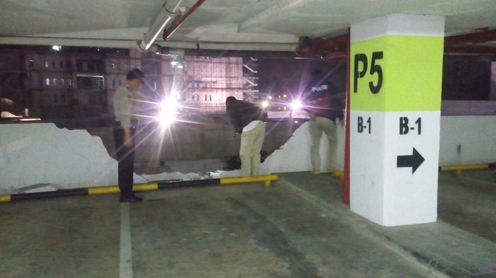 "Saat itu mobil hendak turun dari parkiran P6 ke P5, jalanan menurun dari timur ke barat, kemudian seharusnya belok ke kanan, namun pengemudinya kehilangan kendali dan kemudian menabrak tembok pembatas dan terjun ke bawah setinggi 9,80 meter," jelas Dwiyono saat dihubungi detikcom.
