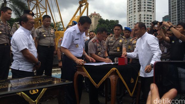 Foto: Kapolda Metro Jaya Irjen Pol Tito Karmavian dan Gubernur Ahok resmikan groundbreaking parkiran bertingkat Polda (Foto: Mei Amelia/detikcom)