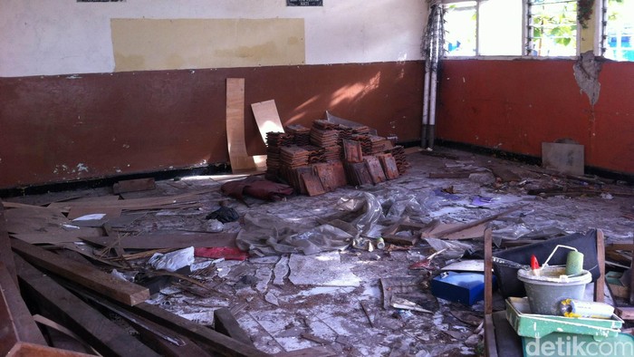 Dua ruangan berhasil diperbaiki dengan dana BOS dan santunan orang tua murid pada 2015 lalu. Akan tetapi dua ruangan lagi masih teronggok dengan sisa-sisa reruntuhannya.