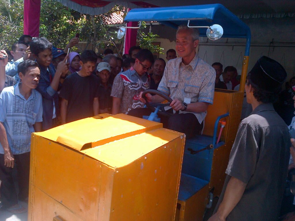 Ganjar datang langsung ke bengkel Sariman di Dusun Sidasari RT 05 RW 01, Desa Tambaksari, Kecamatan Kedungreja, Cilacap Jawa Tengah. Ia melihat alat yang dikenal orang Jawa dengan sebutan "Jogjig" itu.
