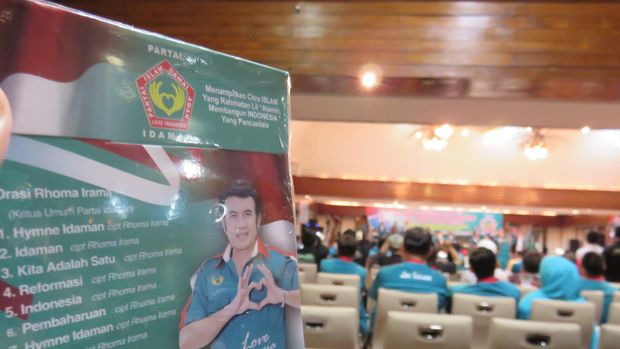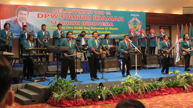 "Idaman.. menjaga persatuan. Idaman.. Rahmatan lil alamin. Idaman.. Harapan Indonesia," dendang Rhoma diikuti para kader yang ikut bernyanyi sambil bergoyang.