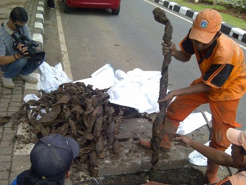 Mereka sudah menyisir gorong-gorong di Jalan Medan Merdeka Selatan, tepatnya di depan Wisma Antara itu sejak sekitar pukul 10.00 WIB.