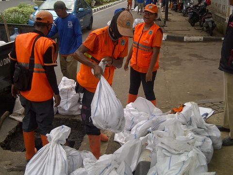 Foto: PPSU mengangkut bungkus kabel dari dalam got (Masaul/detikcom) |