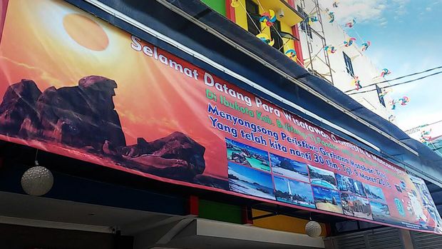 Hotel-hotel di Belitung juga memasang spanduk penyambutan turis gerhana. Spanduk itu juga ditambahkan foto-foto lokasi wisata andalan Belitung.