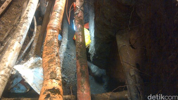 Pantauan di lokasi pada pukul 23.30 WIB, penggalian masih dilakukan oleh polisi dibantu pihak PLN, Telkom, dan Sudin Tata Air. Mereka menyedot air menggunakan pompa guna mempermudah proses pencarian dan olah TKP.