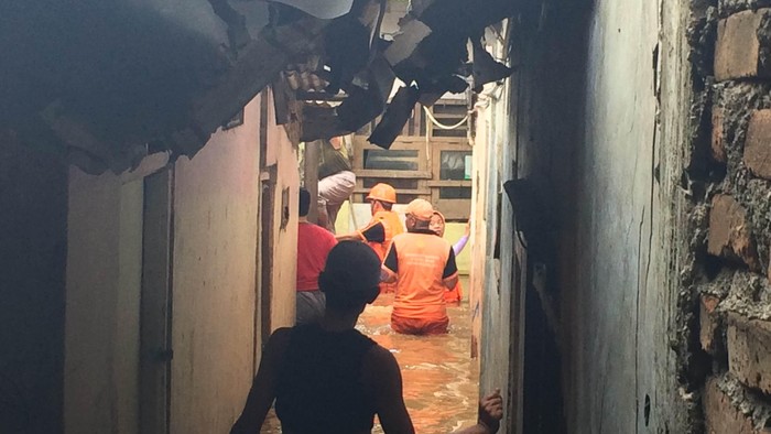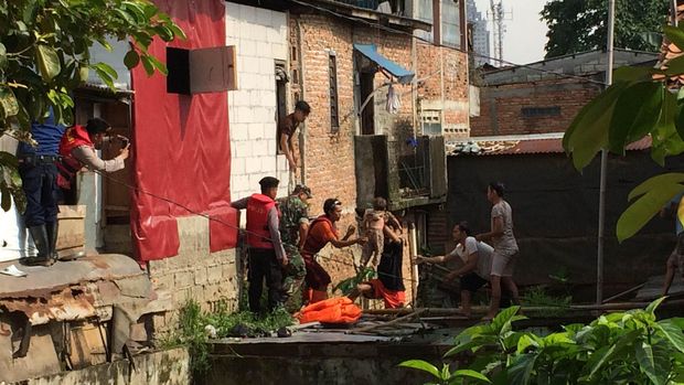 Ibu-ibu dan balita menjadi prioritas utama para tim gabungan Polisi dan TNI untuk menyelamatkan warga yang terjebak luapan Sungai Ciliwung. Sejak semalam, Senin (7/3) dini hari, debit air di Sungai Ciliwung meluap hingga status siaga 1.