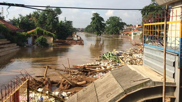 Pantauan detikcom, Selasa (8/3/2016) sekitar pukul 08.40 WIB, aliran sungai Ciliwung tampak meluap dan menggenangi permukiman warga yang berada di Kelurahan Rawajati, Jakarta Selatan. Sampah-sampah berbagai jenis dan ukuran menumpuk juga menjadi salah satu penyebab aliran air sungai terhambat.